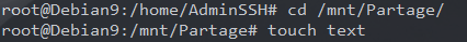 On se rend ensuite dans le dossier partagé /mnt/Partage et on y crée un fichier qui va nous permettre de tester le bon fonctionnement du serveur et des droits qui ont été appliqués aux contenus partagés