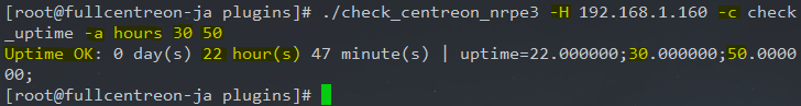 Un exemple avec le script check_uptime qui permet de vérifier le temps d’activité d’une machine.