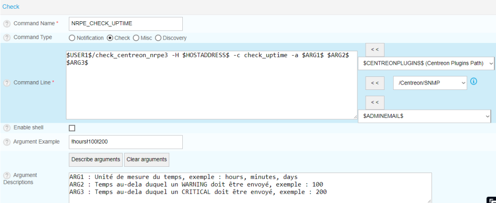 Création de la commande de check NRPE_CHECK_UPTIME
