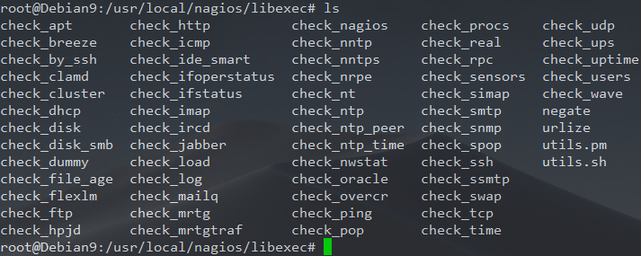 Les scripts qui permettent de réaliser les tâches de supervision sur la machine se trouvent maintenant dans le dossier /usr/local/nagios/libexec/.