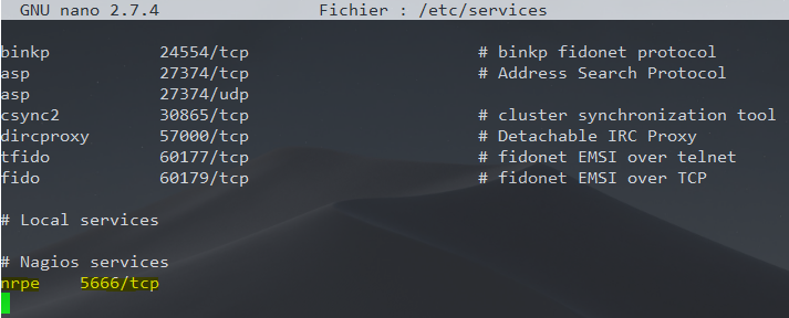 On remarque alors que le service nrpe est associé au port TCP dynamique 5666